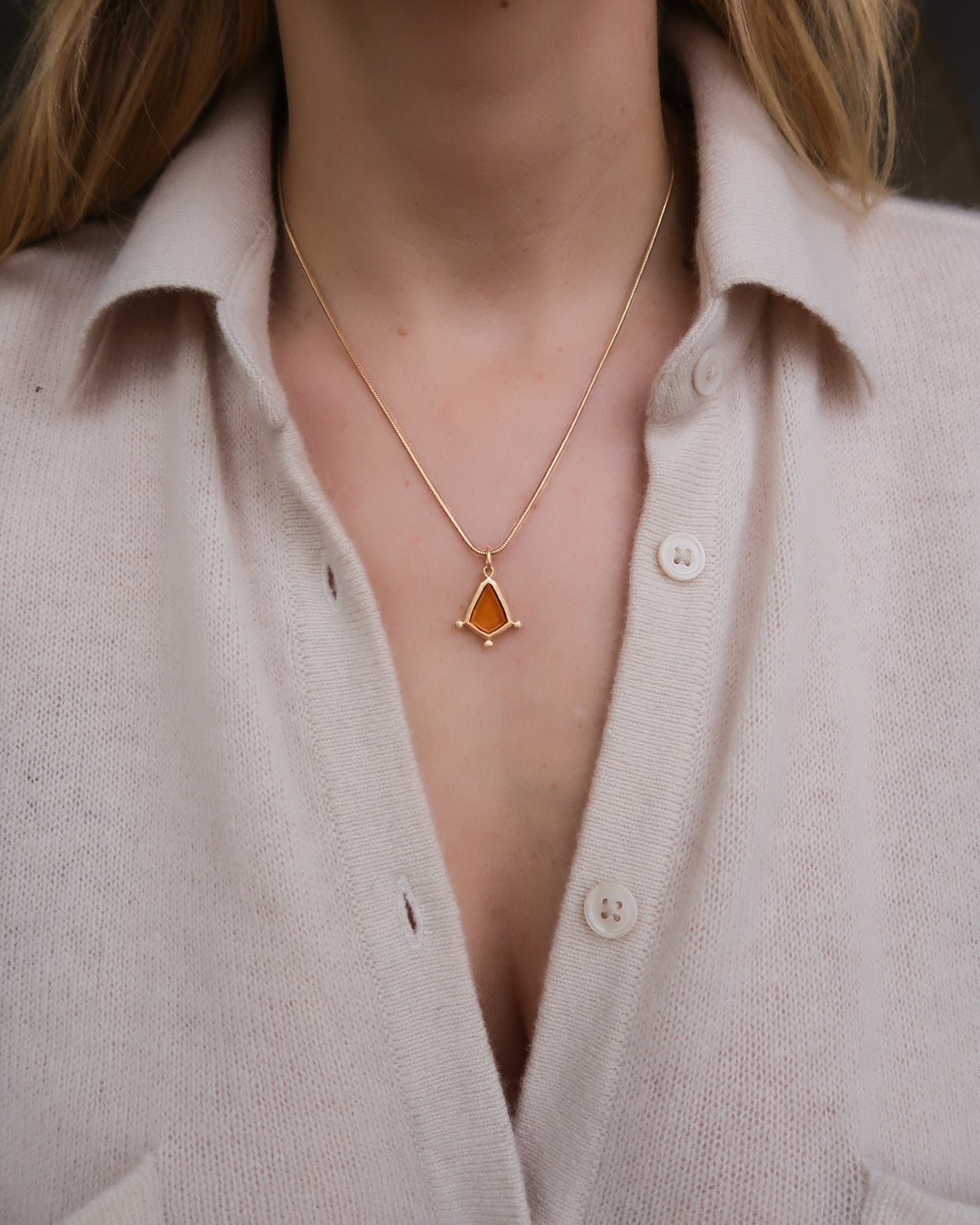 Do we choose our destinies, or are they chosen for us? In Greek mythology, the Fates, or Moirai, presided over our fates. The Moirai ensured every being, mortal and divine, lived out their destiny as it was assigned to them by the laws of the universe. The three sisters each held a vital piece of life in their hands. Clotho, the youngest of the sisters, presided over our births, Lachesis spun out the thread of all the events and actions of our life from her spindle, and Atropos, the eldest of the three, cut the thread of human life with a pair of scissors when it was our destined time to die. The Fates Pendant challenges you to recognize what is in your control versus what is inevitable. The three golden orbs represent not only the three sisters but also the past, present, and future. The portrait cut gemstone acts as both mirror and window to help you see yourself and remind you of your role in your destiny—nothing is set in stone. While the Greeks may have believed otherwise, your fate is your own.